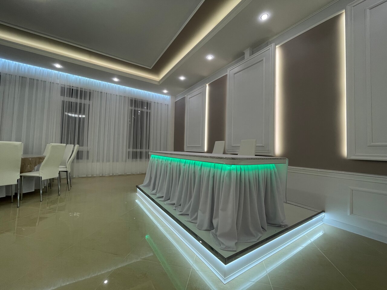 Богатый, белый красивый большой зал. Обслуживание на высшем уровне.